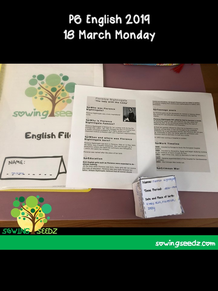 P6 English / 18 March 2019 Monday / Biography Activity